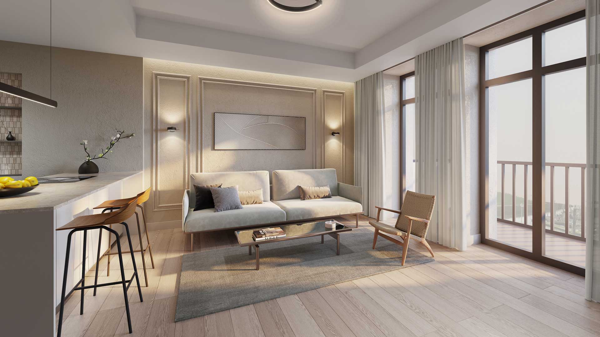 Damit Sie eine Idee davon bekommen, wie die Apartments in etwa eingerichtet werden. Je nach Wohnungstyp kann es hier zu Abweichnungen kommen. Bei den Bildern handelt es sich um Visualisierungen eines Muster-Apartments für das Das Friesland.